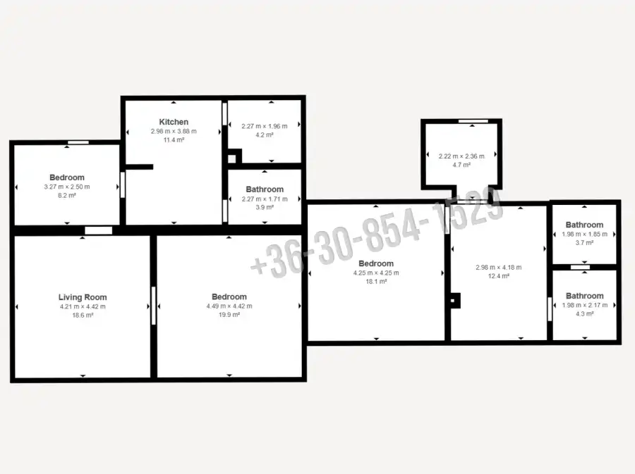 A nagyobbik lakrész 75, a kisebbik 35 m2 nagyságú.